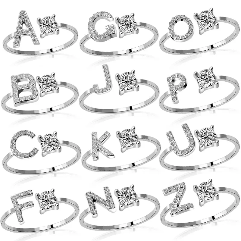 Compra Anillo con 26 letras iniciales para mujer, mosaico de diamantes de imitación brillantes, apertura a la moda, joya para mujer, abalorio, regalo de joyería, 1 ud. 9gL9rxwpg