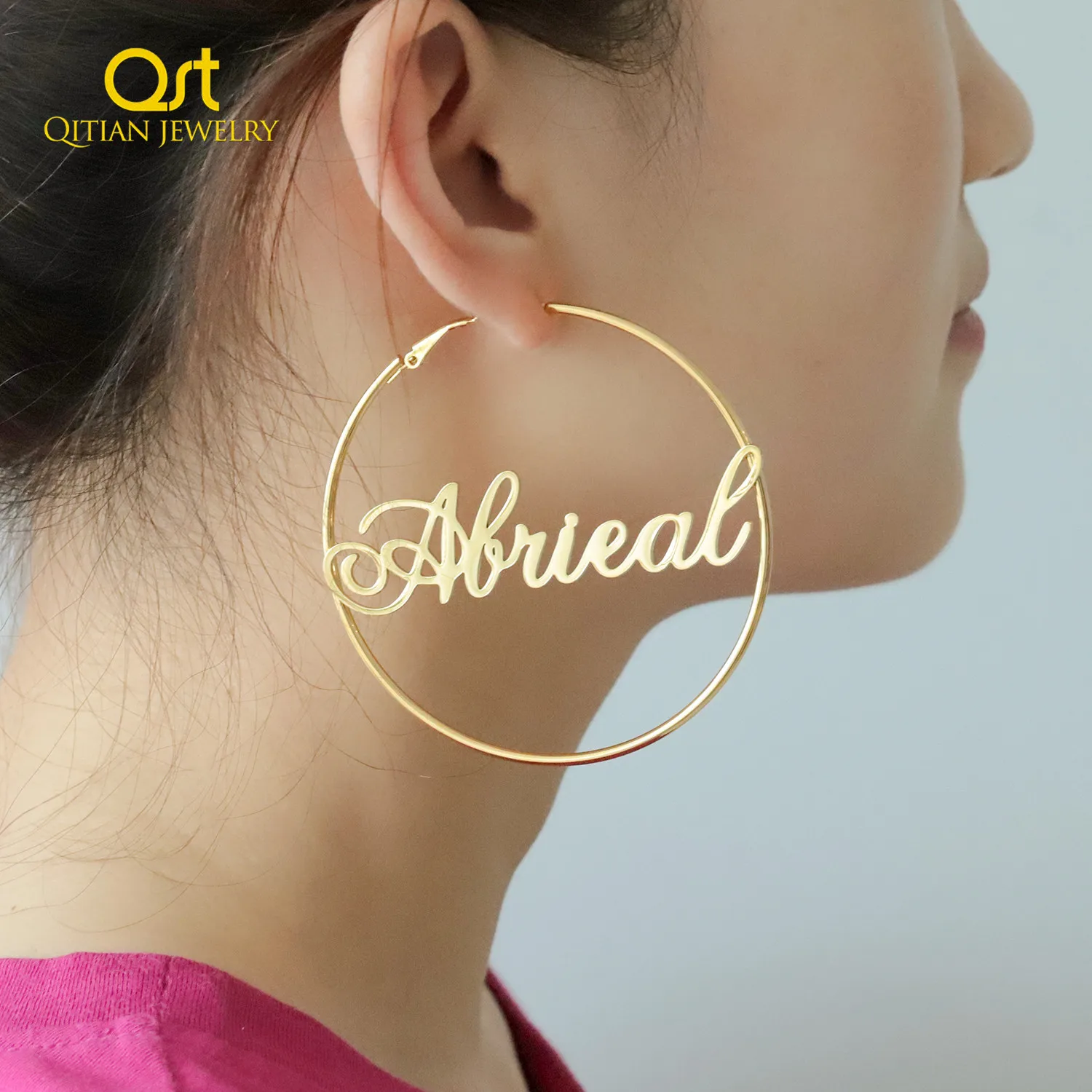 Voluptuoso vendedor y recomendado. se le agradece Qitian Official Store, me encanta este Pendientes de aro con nombre personalizado para mujer, joyería de acero inoxidable, con nombre de fuente.